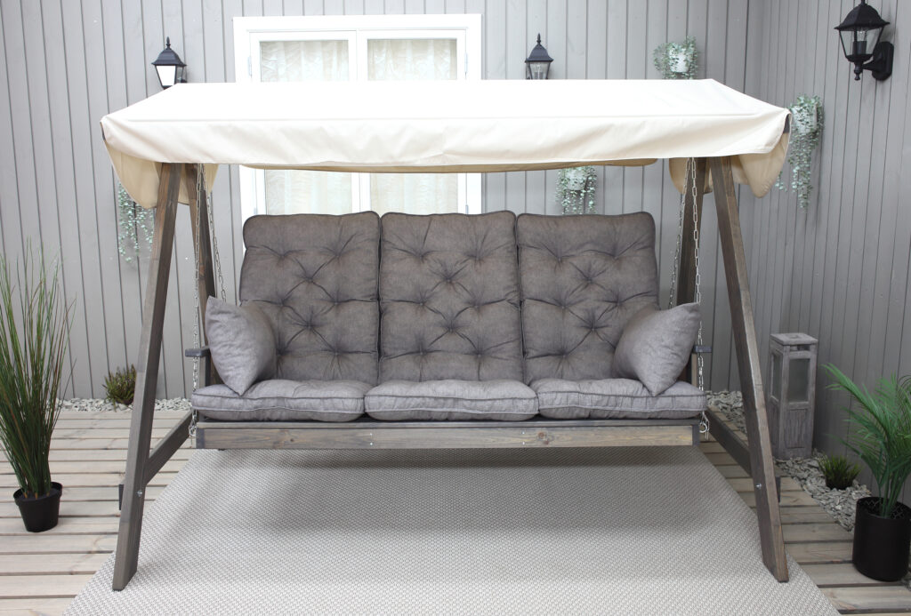 Comfy cushion set from poly-cotton fabric with crushed foam fill. Set includes high-back cushions 125x55x12 cm and side pillows 50x30x15 cm. Suitable for art. 500321 Pelle garden swing 165 cm.