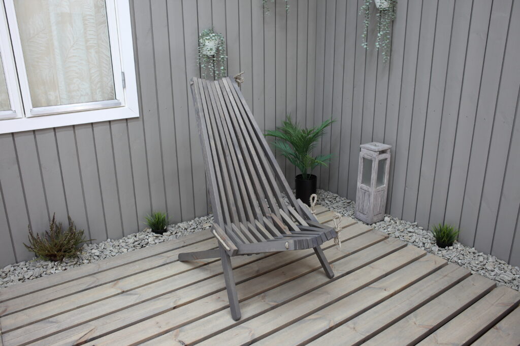 Reclining chair for relaxation on hot summer days. Stands out from the crowd with a lovely look. Fits into most environments – both indoors and on the wooden deck, balcony or campsite. The ropes must be tightened if necessary.