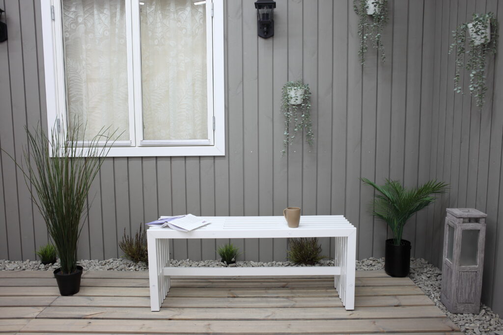 Stable bench suitable for outdoor furniture or as a stand-alone bench.
