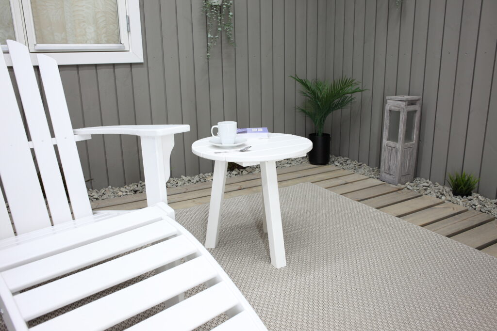 Practical small round side table in different color options. This side table can be easily combined with other different chairs from our range (both wooden and wicker).