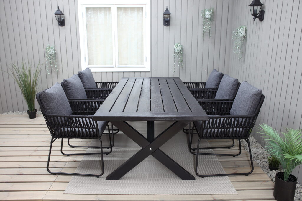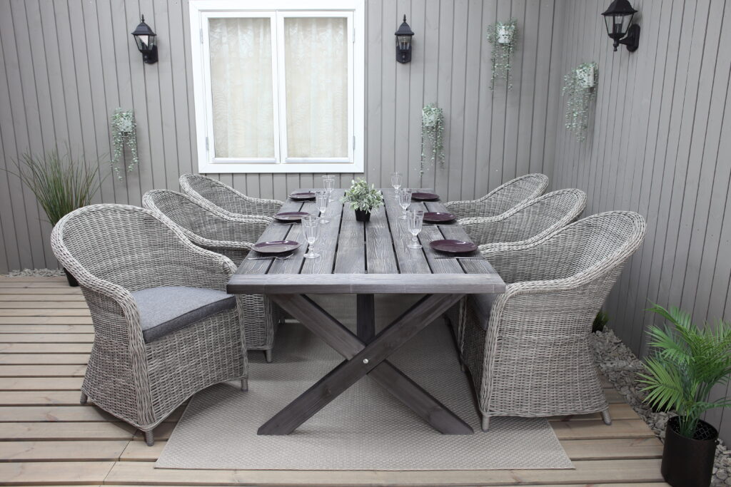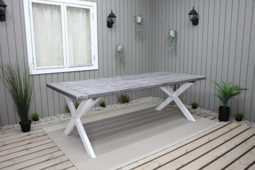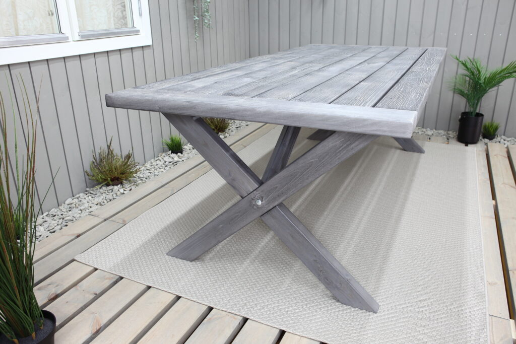 Massive and stable rustik garden table in different color options. Fits comfortably 6-8 persons. This table can be easily combined with different chairs (wooden and wicker).