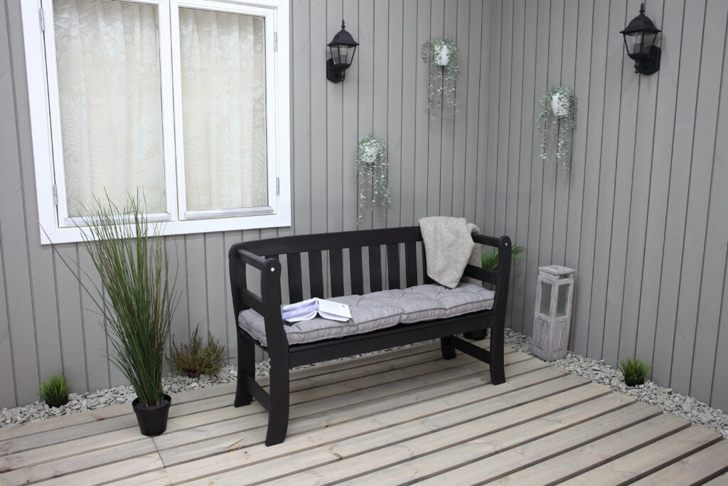 Stylish and solid sofa with classic design. Its familiar design where straight shapes are mixed with rounded details creates a cozy and idyllic atmosphere in your patio. An affordable and durable garden sofa that fits in most gardens! Available in 3 colors – white, grey and black.