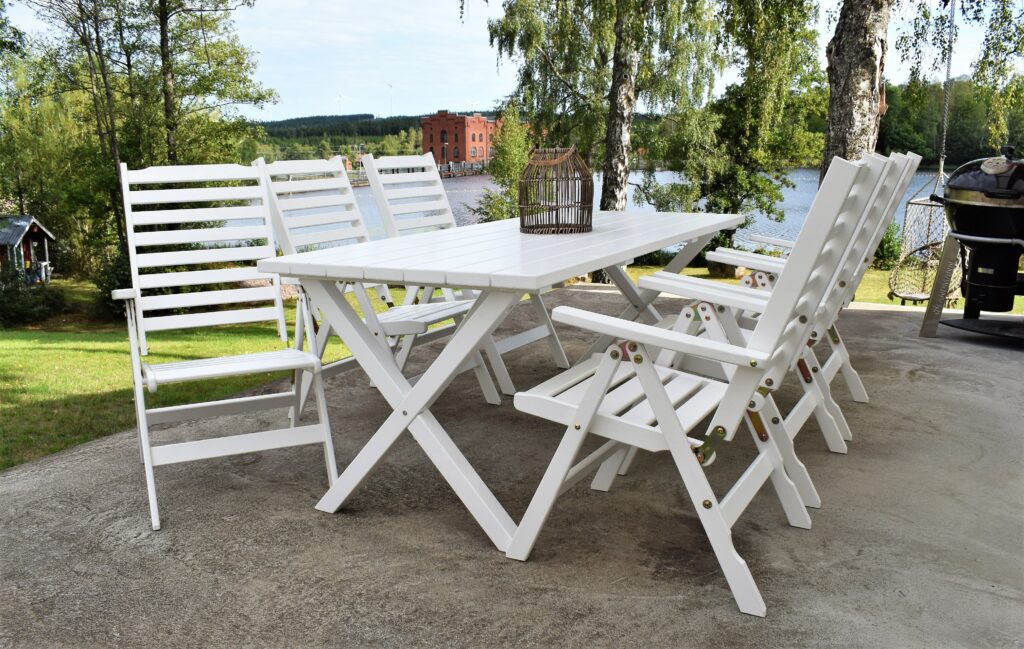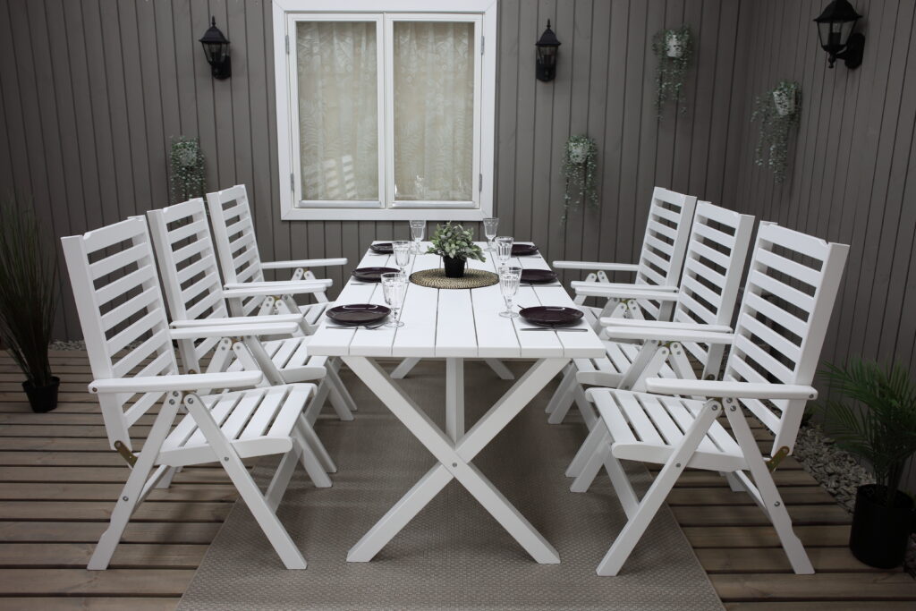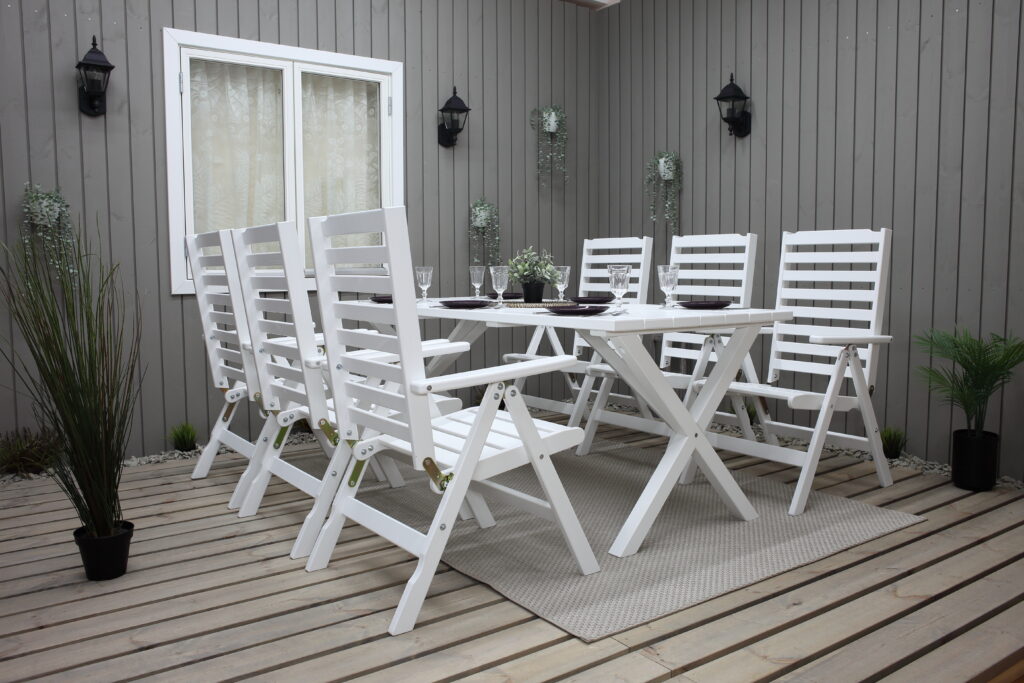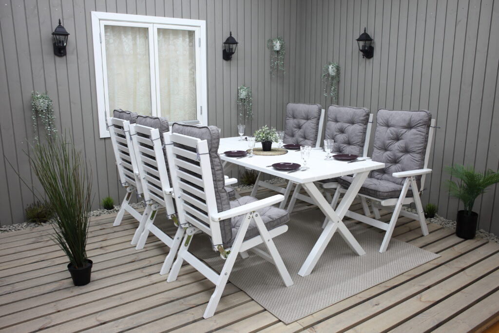 Practical and elegant garden furniture group with 190 cm table and 6 Båstad position chairs. Works great as a dining group for 6 people. Items can be bought also separately.