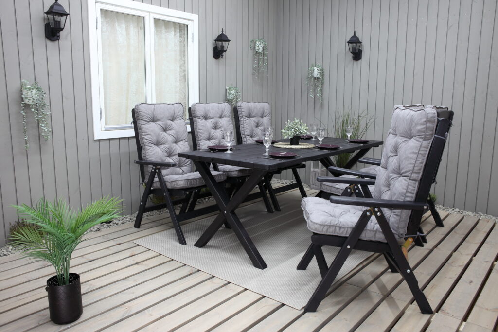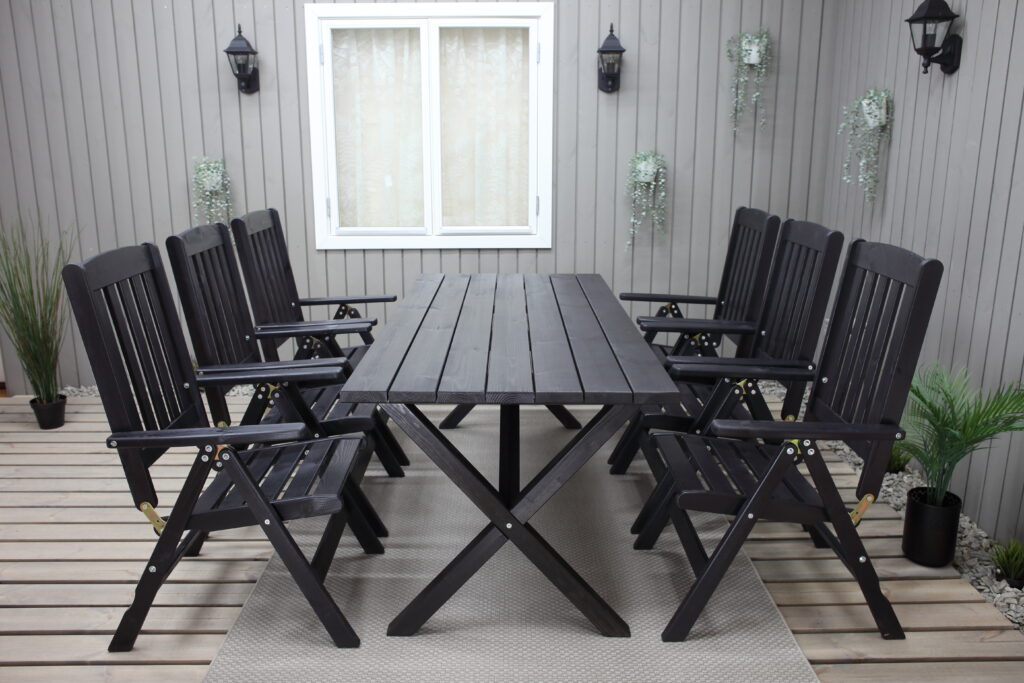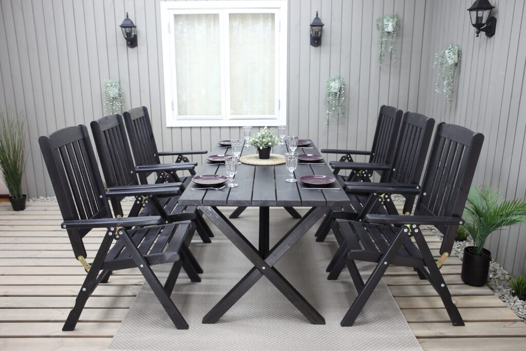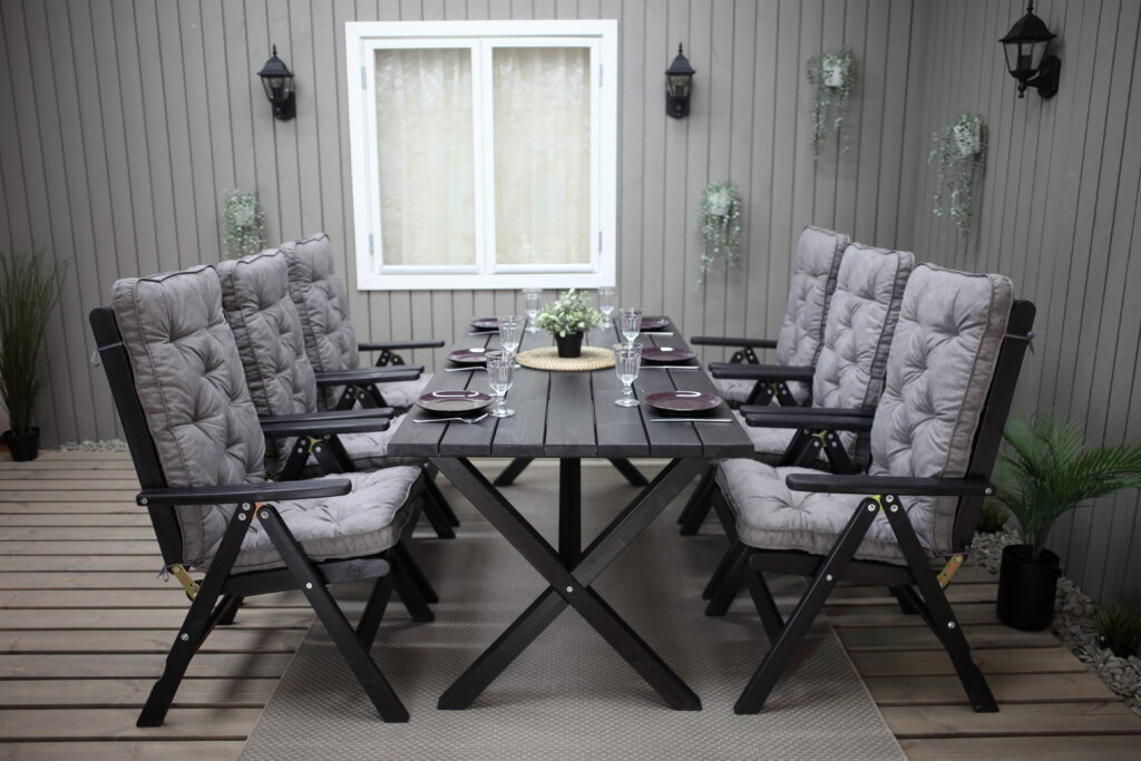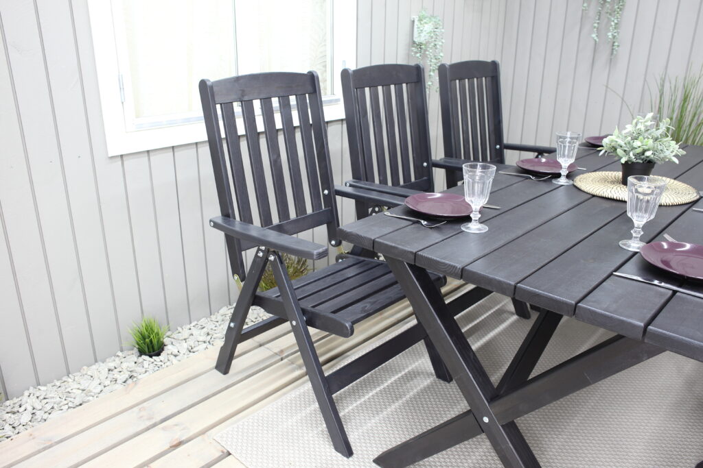 Practical and elegant garden furniture group with 190 cm table and 6 Oliver position chairs. Works great as a dining group for 6 people. Items can be bought also separately.